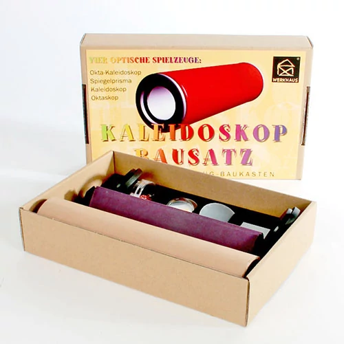 Optikai építőszett, amiből háromféle játékot, kaleidoszkópot, oktaszkópot és okta-kaleidoszkópot készíthetünk. A doboz méretei (hosszúság, szélesség, magasság): 210 mm x 135 mm x 45 mm Az oktaszkóp hossza: 180 mm. |